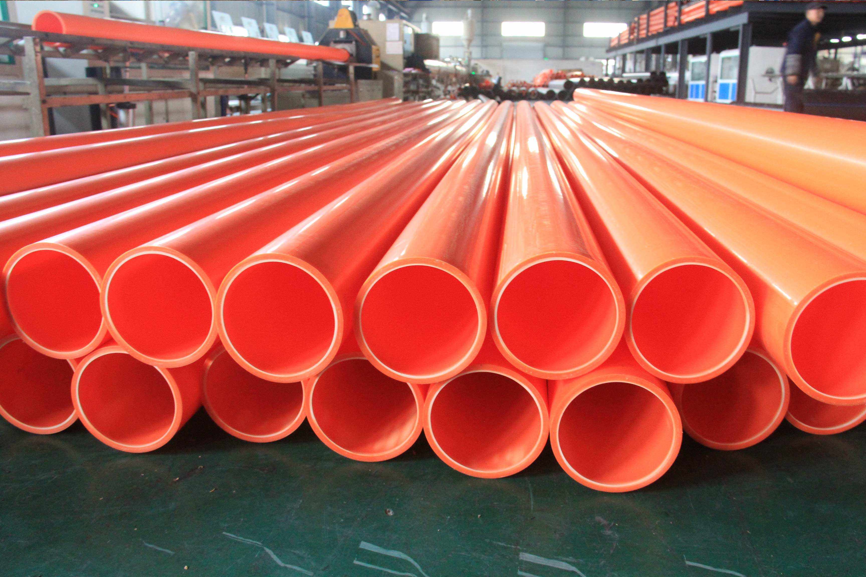 MPP材质所生产的管材可在-5℃-70℃的外界温度下进行长达50年的时间工作,具有强度高、耐湿性能好、穿放电缆容易、施工简便、节省费用等一系列优点。PVC材质生产的管较脆,其材料弯曲模量及拉力小。